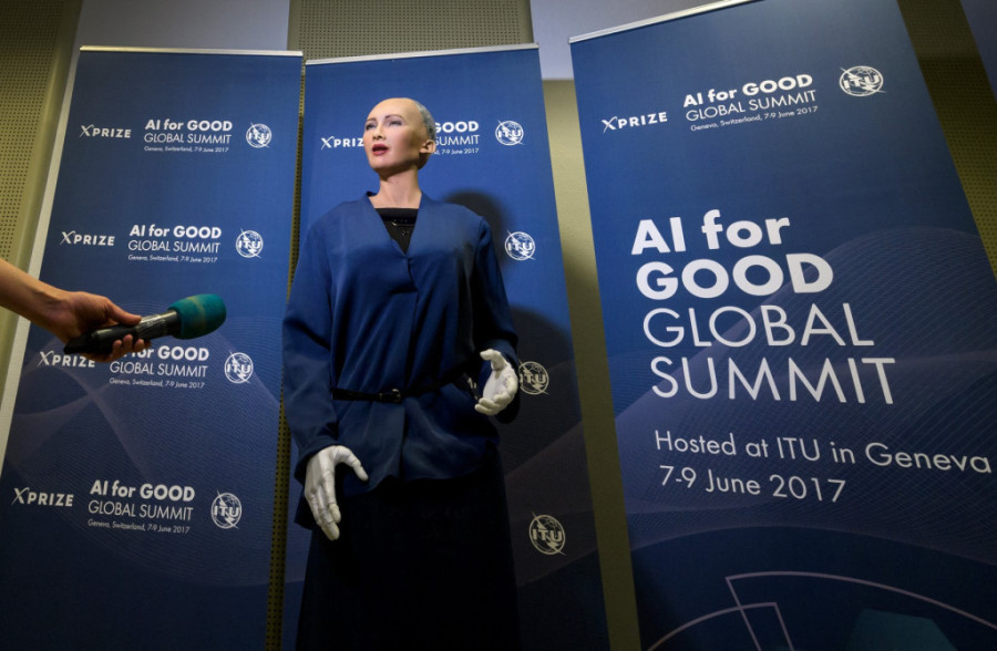 Devet humanoidnih robota sa omogućenom veštačkom inteligencijom sedelo je ili stajalo sa kreatorima na podijumu u konferencijskom centru u Ženevi na, kako je Međunarodna unija za telekomunikacije Ujedinjenih nacija najavila, prvoj svetskoj konferenciji za novinare na kojoj su predstavljeni humanoidni društveni roboti.