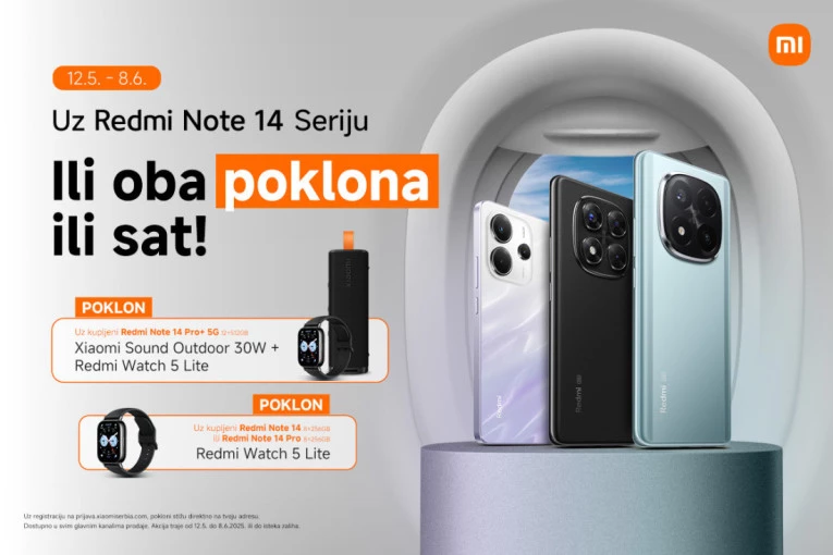 Bilo da biraš telefon zbog moćne kamere, brzine ili izdržljive baterije, uz novu akciju koju je Xiaomi pripremio dobijaš i više od toga. U periodu od 12. maja do 8. juna, kupovinom jednog modela iz Redmi Note 14 serije, na poklon dobijaš Redmi Watch 5 Lite. Ako se ipak odlučiš za Redmi Note 13 Pro+ 5G ili neki od naprednijih modela iz Redmi Note 14 serije, poklon paketu se pridružuje i Xiaomi Sound Outdoor 30W. Sat koji prati tvoj tempo ili zvučnik koji pravi atmosferu – uz određene modele, dobijaš oba.