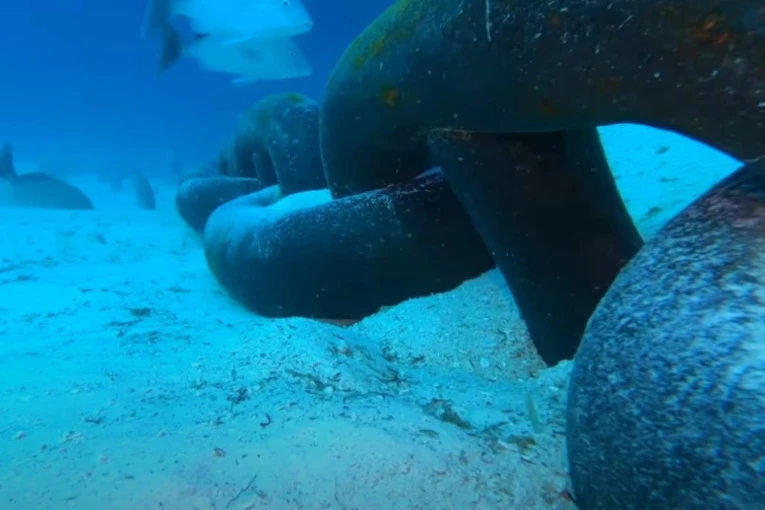 Kamera je brzo potonula na dno, tik uz masivno sidro broda, beležeći naizgled mirne prizore morskog sveta.
