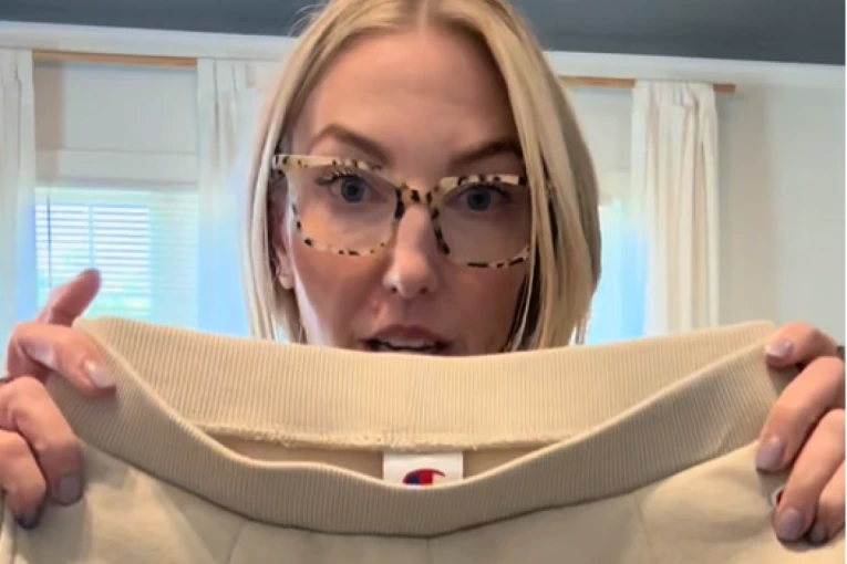 Ginekološkinja i influenserka Marsi Krauč podelila je na TikToku video u kojem pokazuje bež trenerku nastale u saradnji brenda Champion i Targeta. Na prvi pogled sve deluje uobičajeno, ali kada ih je okrenula i raširila, primećuje se nabor tačno na predelu međunožja.