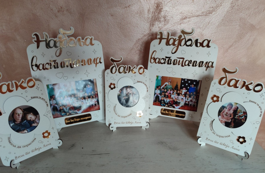 "Definitivno cveće koje proizvodimo od medijapana, u oblicima ruže, orhideje, božura, koji mogu biti i personalizovani sa gravurom i posvetom. Pored toga ramovi za slike, kutijice za nakit, porodična stabla sa emotivnim porukama... Kupci imaju razne želje i kada su pokloni u pitanju umeju da budu maštoviti, a na nama je da probamo da na najbolji način konstruišemo njihovu zamisao."
