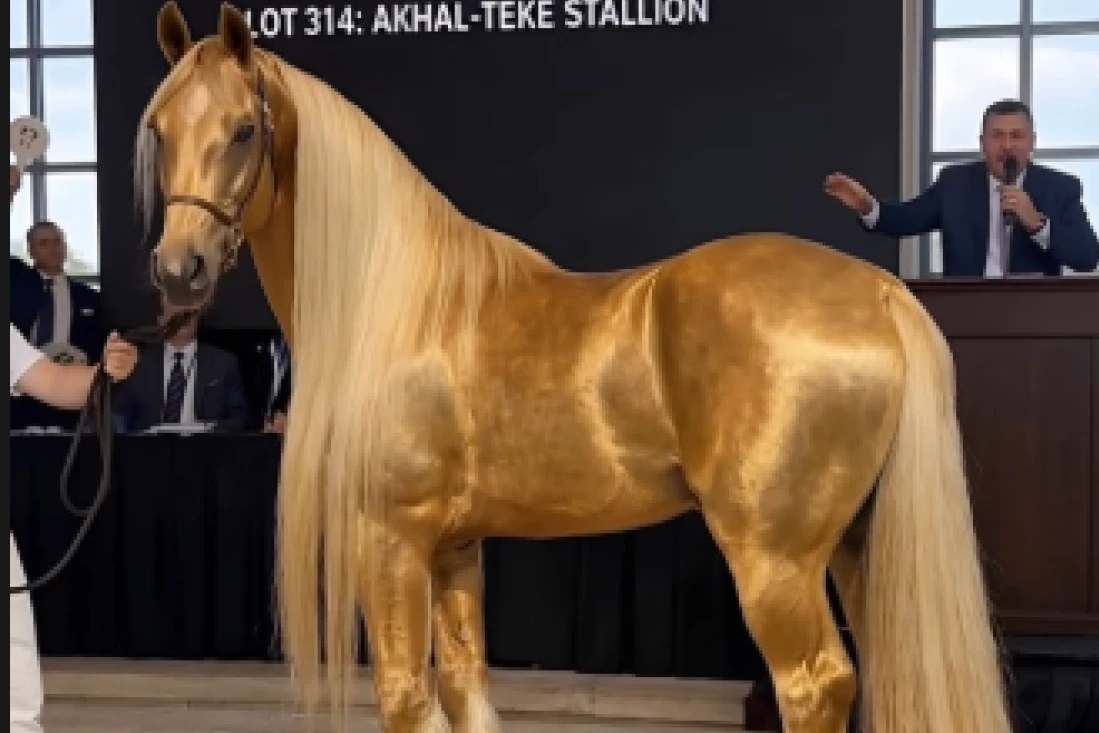 U opisu stoji da je reč o rasi Akhal-Teke, jednoj od najređih i najstarijih na svetu, poreklom iz Turkmenistana, gde se smatra nacionalnim simbolom i ponosom.