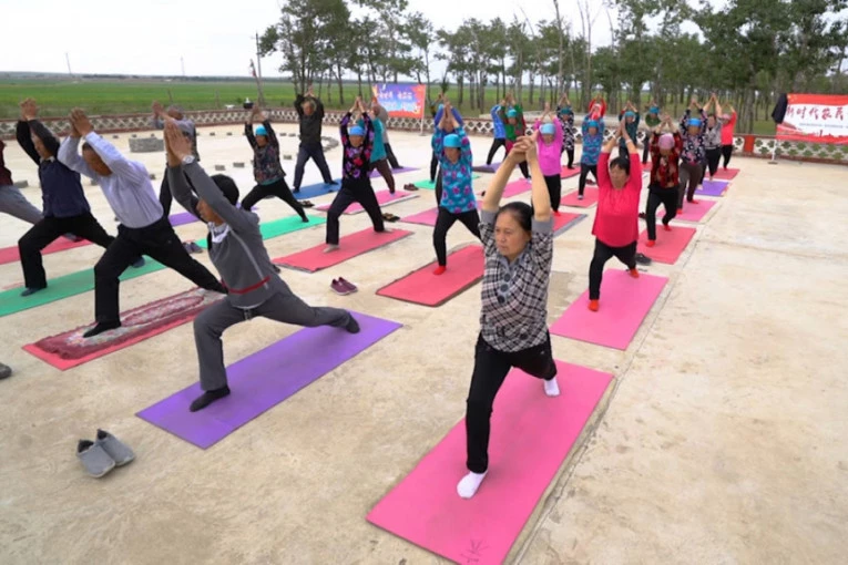 Skriveni u planinama severne Kine, sredovečni i stariji farmeri u selu Yugouliang marljivi su u svakodnevnim vežbama joge.