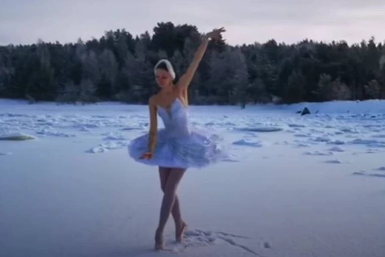 Ruska balerina, članica svetski poznatog pozorišta Marinski iz Sankt Peterburga, u zaleđenom Finskom zalivu, i pri temperaturi od minus 15 stepeni celzijusa, u baletskom kostimu izvela je scenu iz baleta “Labudovo jezero” Petra Iljiča Čajkovskog.