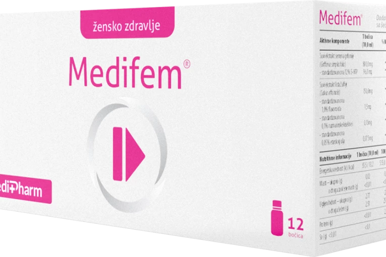 Patentirani proizvod Medifem sadrži ova dva ekstrakta i klinički dokazano smanjuje simptome znojenja, valunga, glavobolja, kao i gubitak gustine kostiju.