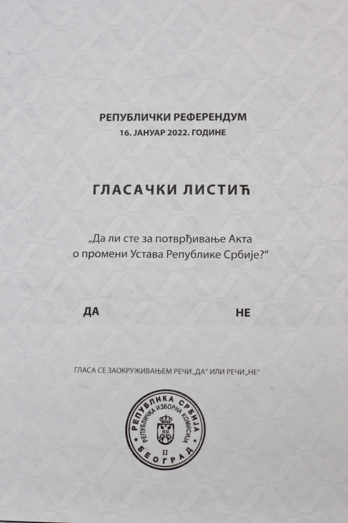 - Pitanje na referendumu glasi da li ste za utvrđivanje akta o promeni Ustava Republike Srbije, na koje će građani nedvosmisleno odgovarati sa da ili ne - rekao je on i naveo da će glasački listić biti bele boje i da je 0,5 posto od ukupnog broja listića rezervni.