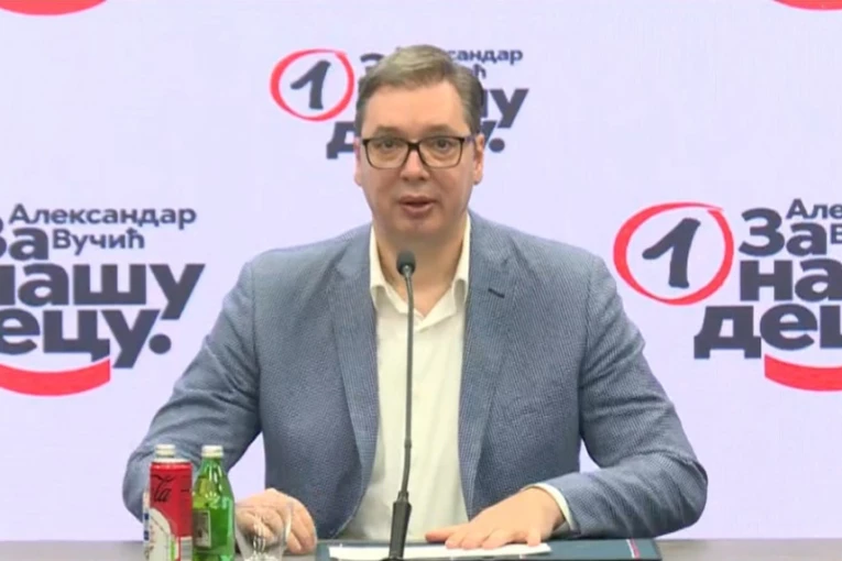 Nakon zatvaranja birališta, predsednik Srbije Aleksandar Vučić uključio se iz centrale Srpske napredne stranke.