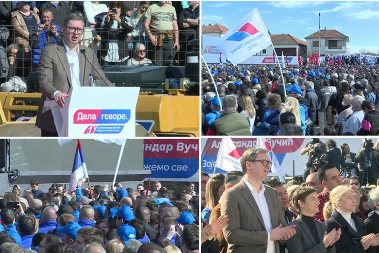 - Dame i gospodo, dragi prijatelji, divno je danas biti ovde u Merošini na jugu Srbije i hvala svima vama koji ste došli. Ovde sam da kažem šta smo uradili, ali i šta ćemo tek da uradimo u budućnosti. Tačno je da smo uradili puteve više nego iko ikad u ovoj zemlji, tačno je da smo izgradili železnice, aerodrome...Samo ćete čuti u kampanjama kako će sve da bude besplatno, kako će da teče med i mleko, a stvari u državi ne idu tako. Samo se setite da je prosečna plata u Merošini bila 210 evra, pa nama je minimalac prešao na 300 evra. Je li dobro, pa nije, moraju biti još veće. Prosečna plata je danas 600 evra, ali hoću da znate da ja ne mislim da je to dovoljno. Znam koliko teško živite, koliko se mučite i znam da i te kako poštujete rad i napredak, ali moraćemo da radimo još više i ja znam da vi to hoćete sa nama i da ćemo u tome uspeti - istakao je predsednik.