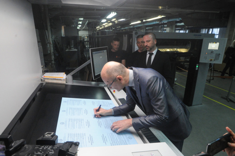 U prisustvu predsednika Republičke izborne komisije Vladimira Dimitrijevića, sekretara Srđana Smiljanića, članova Republičke izborne komisije, kao i predstavnika predlagača kandidata i posmatrača ovlašćenih za praćenje rada organa za sprovođenje izbora, započeto je štampanje glasačkih listića za izbore za izbore za predsednika Republike Srbije.