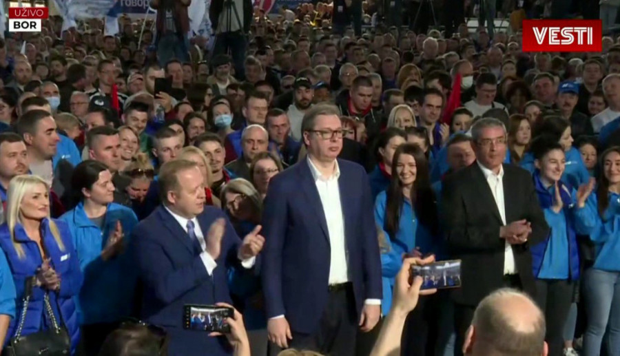 -Broj jedan našoj listi je legendarna doktorka Danica Grujičić, koja se ceo život bori za naše zdravstvo. Dobili smo 10 miliona evra, a minimalno 20 miliona evra je potrebno za izgradnju bolnice u Boru i imate moje obećanje da ćemo ove godine krenuti u taj veliki posao. Tri stvari ću da obećam Boranima. Od 1. maja krećemo da uradimo 30 kilometara puta i žeo mi je što to nismo raniej uradili. Treća stvar je, ono što je veoma važno, neću da radim pre izbora, ali od izbora dolazim u Krivelj da sa ljudima u Krivelju, Slatini razgovaram i da zajednički rešimo svaki problem i pri tome neću nikoga da obmanjujem i neću nikome da govorim ono što želi da čujem. Ako treba 24 sata se neću pomeriti sa stolice da čujem šta država može da uradi za ljude da bi bili sigurni u budućnost zemlje i svoje dece, rekao je Vučić na početku obraćanja.