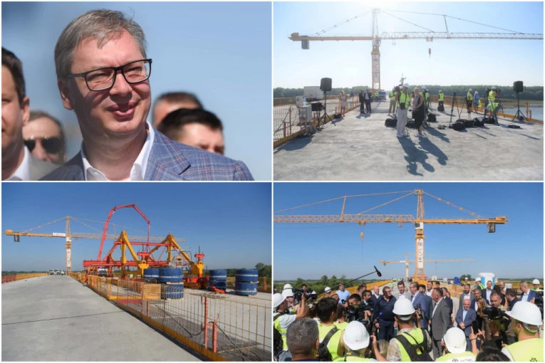 Predsednik je prisustvovao spajanju mosta na Savi koji je veoma važan deo saobraćajnice u ovom kraju Srbije