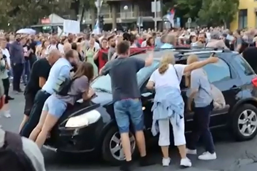 Opozicionari se na tome nisu zaustavili pa su se na njihovoj meti posle toga našli i drugi vozači koji su samo želeli da prođu i nastave svojim putem. Malobrojni aktivisti opozicionih organizacija su skakali i udarali po njihovim automobilima.