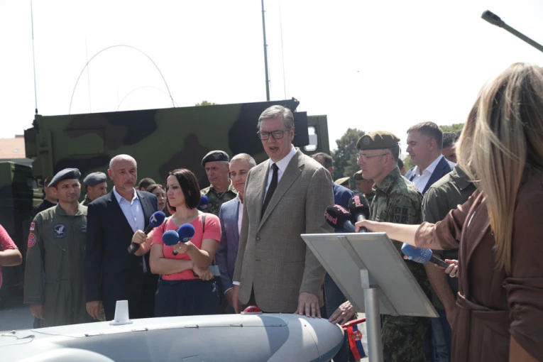 Predsednik Srbije Aleksandar Vučić, koji prisustvuje danas prikazu novoproizvedenog naoružanja i vojne opreme iz domaće namenske industrije, za potrebe jedinica Vojske Srbije, nije želeo da komentariše saopštenje Evropske spoljnopolitičke službe (EEAS) u kojem za podizanje tenzija podjednako optužuju i Beograd i Prištinu i nazivaju ih krivcima za eventualnu eskalaciju.