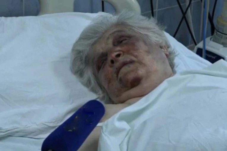 Božana R. (84) iz Severne Mitrovice oporavlja se na odeljenju intenzivne nege u bolnici u Severnoj Mitrovici, nakon što su je brutalno pretukla dvojica maskiranih napadača koji su pokušali da je opljačkaju.