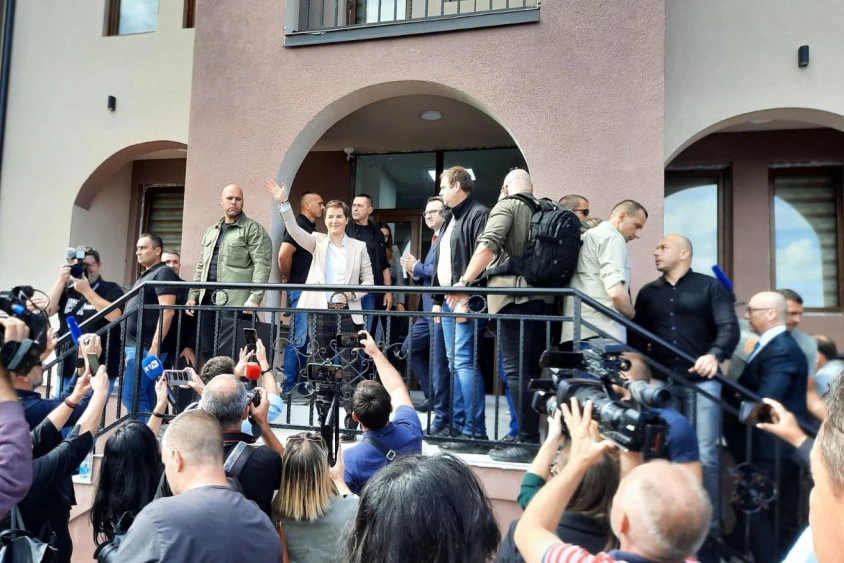 Premijerku su dočekali gradonačelnik Mitrovice Milan Radojević, predstavnici Srpske liste Goran Rakić i Igor Simić, a okupljen je veliki broj ljudi. Građani nose plakate na kojima, između ostalog, piše "Dobro došli na svetu srpsku zemlju - na Kosovo i Metohiju".