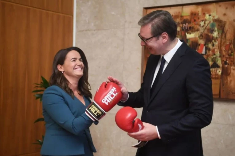 - Dame su oduvek bile jače od nas, a pošto je predsednica Katalin ljubiteljka boksa, poklonio sam joj ovaj par rukavica, ujedno i kao prigodnu borbenu opremu za sve predstojeće izazove. Ja sam dobio košarkašku loptu, taman da se spremim za novi ispitni rok - objavio je Vučić na Instagramu.