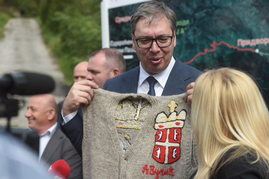 - Ovo niko nema da se ovako greje na zimu, a još piše i A. Vučić - rekao je radosno predsednik dodavši da će ga rado nositi.
