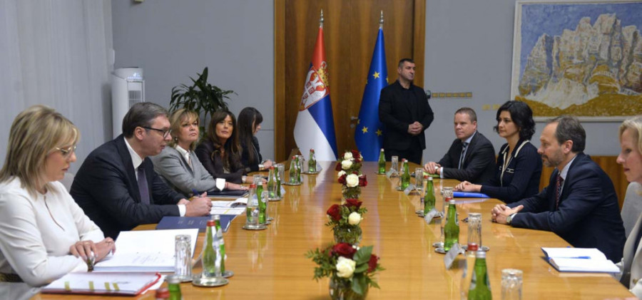 Predsednik Srbije Aleksandar Vučić sastao se sa šefom Delegacije Evropske unije u Srbiji Emanuelom Žiofreom.