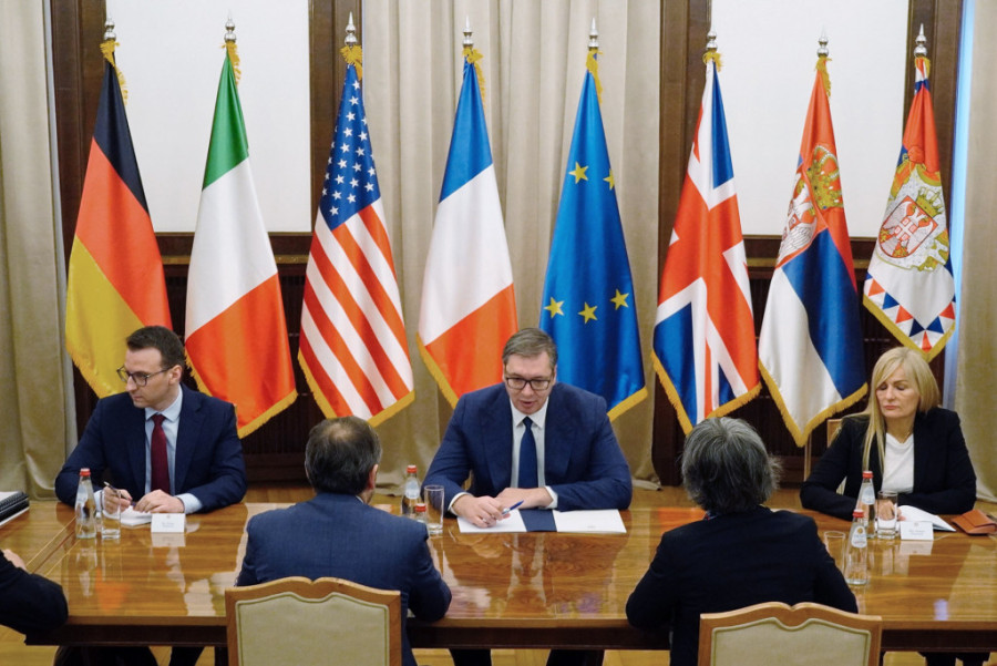 Vučić je na sastanku sa ambasadorima Sjedinjenih Američkih Država, Velike Britanije, Francuske, Italije i Nemačke, kao i šefom Delegacije Evropske unije.