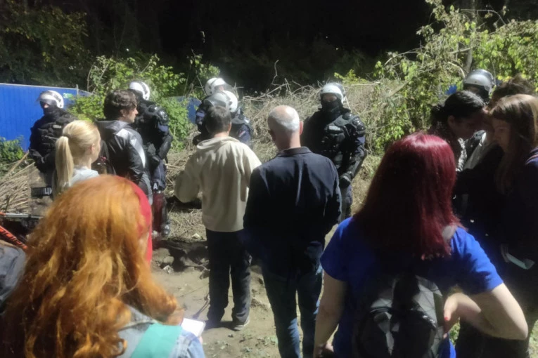 Nešto kasnije grupa od oko 50 ljudi je pokušala da probije policijski kordon. Oni su palili baklje, bacali dimne bombe i guralo pripadnike mupa koji su reagovali u skaldu sa zakonom i nisu dozvolili demonstrantima da poruše zaštitnu ogradu koja se nalazi oko gradilišta.