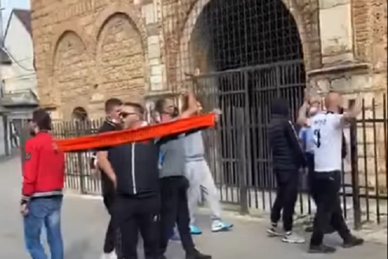 Novi incident na KiM: Navijači ispred Bogorodice Ljeviške uzvikivali „Kosovo je srce Albanije“ i vređali vernike (VIDEO)
