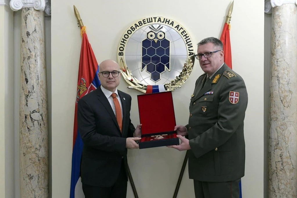 Tokom posete general Stojković uručio je Vučeviću plaketu u znak zahvalnosti za podršku radu Vojnoobaveštajne agencije.