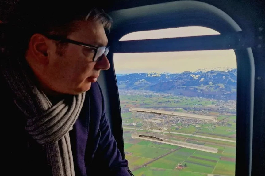 Kako je napisao uz fotografiju objavljenu na zvaničnom Instagram nalogu, ljubazni domaćini obezbedili su helikopterski prevoz do Davosa, a već od 15 sati za srpsku delegaciju počinju popodnevne obaveze.