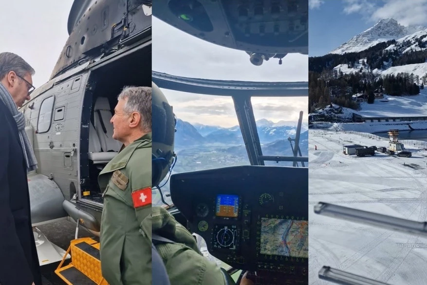 Po dolasku u švajcarski gradić, predsednik Srbije podelio je video snimak vožnje helikopterom do centra gde se održava svetski forum.