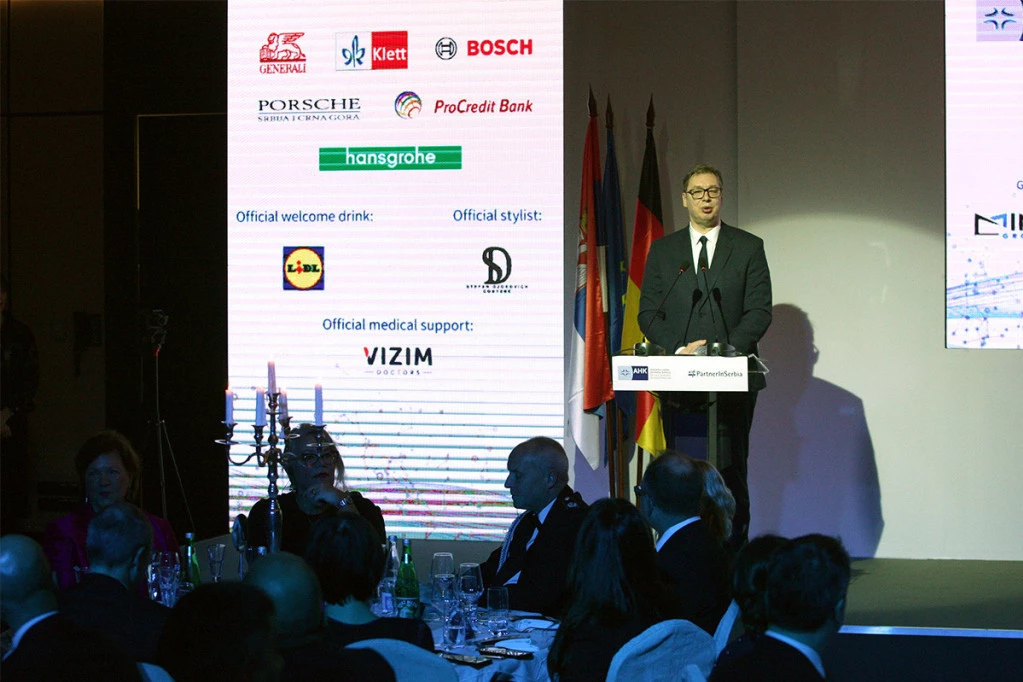 Predsednik je na gala večeri istakao da kada je postao premijer pre devet godina trgovinska razmena dve zemlje bila je oko dve milijarde evra, a danas između 8,2 i 8,3 milijarde evra, kao i da su tada nemačke kompanije zapošaljavale 17.500 ljudi, a danas 78.000.