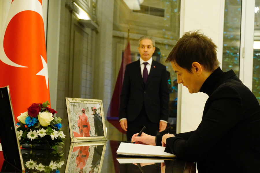Stojimo uz vas spremni da uputimo svu raspoloživu pomoć: Premijerka Brnabić se upisala u knjigu žalosti u Ambasadi Turske