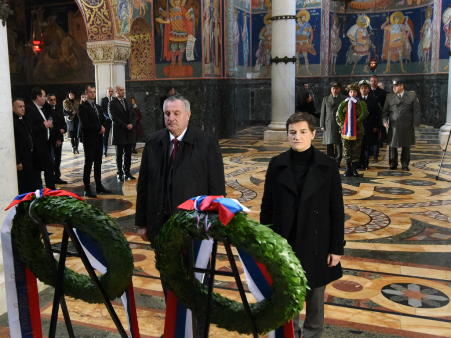 Nakon opela, koje je sa sveštenstvom služio vladika šumadijski Jovan, premijerka je zajedno sa Viškovićem položila venac na sarkofag vožda Karađorđa.