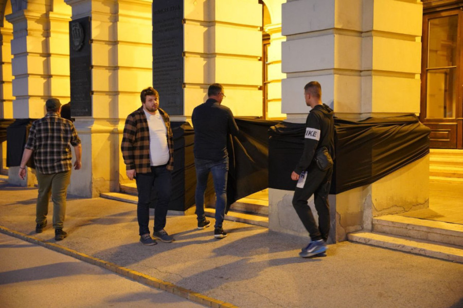 Naime, upravo su se novosadski eko-ekstemisti ove večeri okupili na Trgu slobode ispred Gradske kuće grada Novog Sada. Negde oko 40- ak simpatizera navodnih ekoloških organizacija došetalo je do tog zdanja i oko stubova same zgrade vezali crno platno, kao da je u pitanju neki performans. Među prisutnima su Brajan Brković, Miran Pogačar (pokret “Bravo”), Mladen Cvijetić, Radivoje Jovović, Srđan Đurić (“Moramo- zajedno”), kao I Veljko Krstonošić iz DS-a.