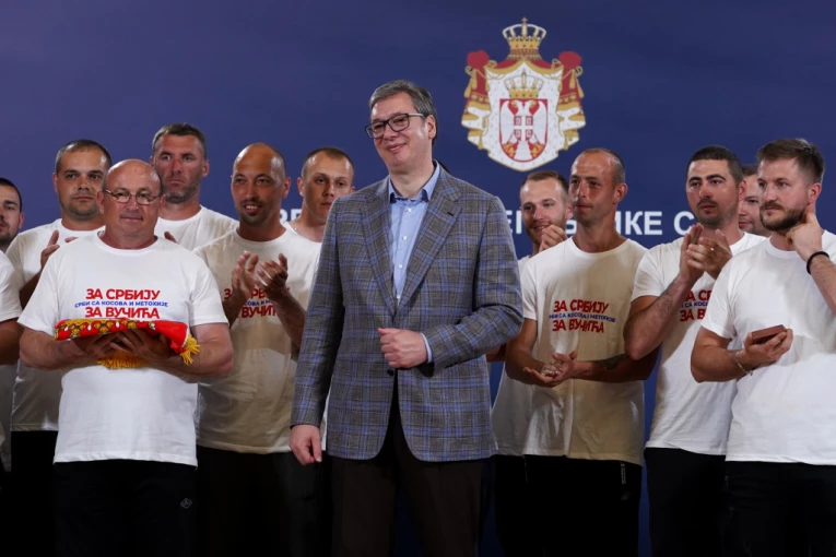 - Ja sam ponosan na to što imam priliku večeras da se zahvalim za podršku ne meni, već državi Srbiji, ovim ljudima. Ponosan sam što čuvate naša ognjišta i brinete o našoj zemlji, i što je uprkos pritiscima beskrajno volite - rekao je Vučić.