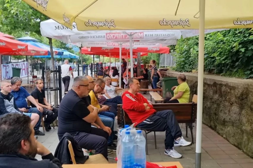 Srbi okupljeni ispred zgrade opštine u Zvečanu, koji već dve nedelje protestuju, prate finalni meč Rolan Garosa između srpskog tenisera Novaka Đokovića i Norvežanina Kaspera Ruda.
