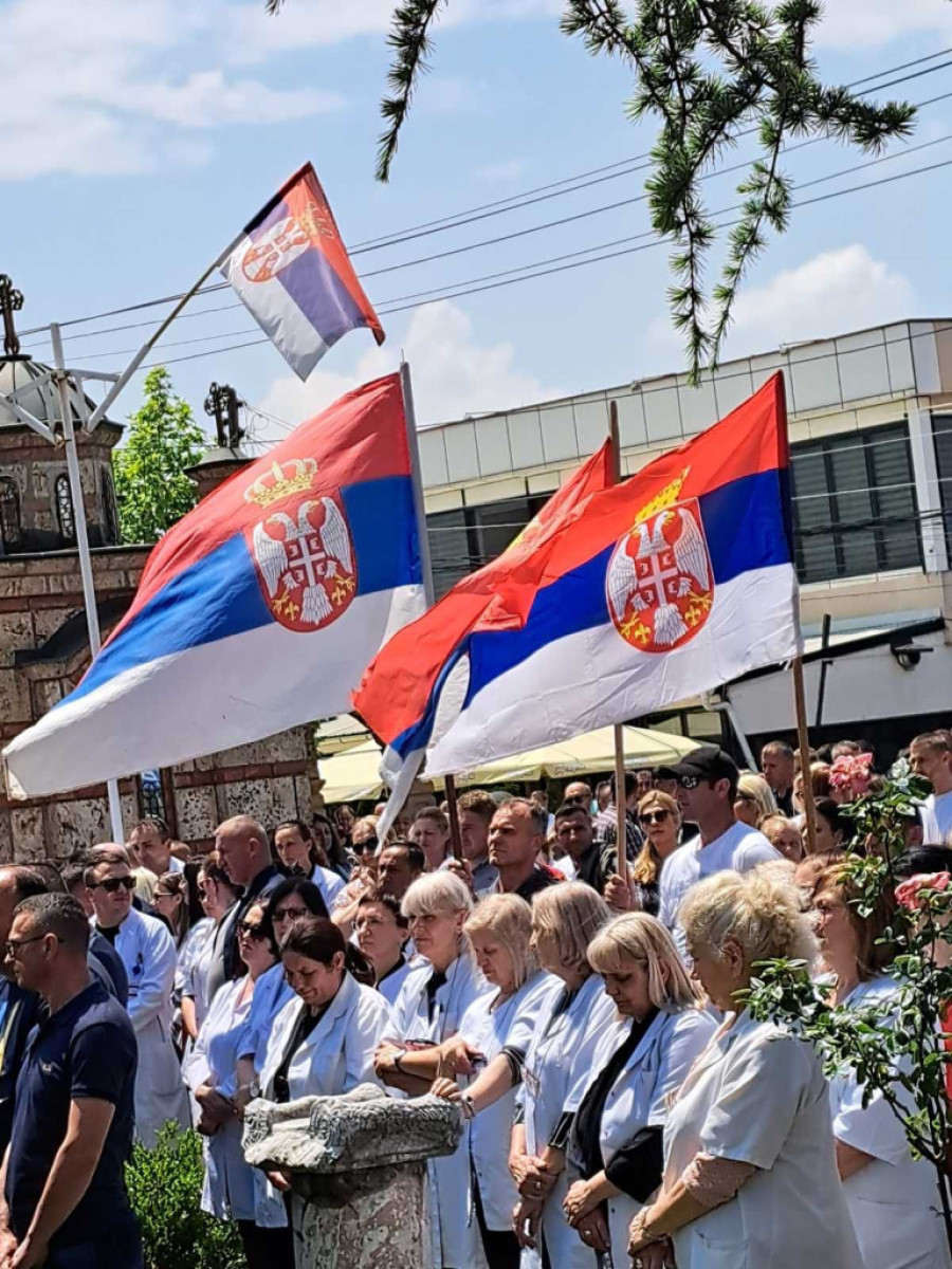On je ponovio i da Srbi mirno prtotestuju već 17 dana i podseća da je već 14 dana prošlo od hapšenja Radoša Petrovića i Dušana Obrenovića, koji su mirno protestvovali sedeći na zemlji.