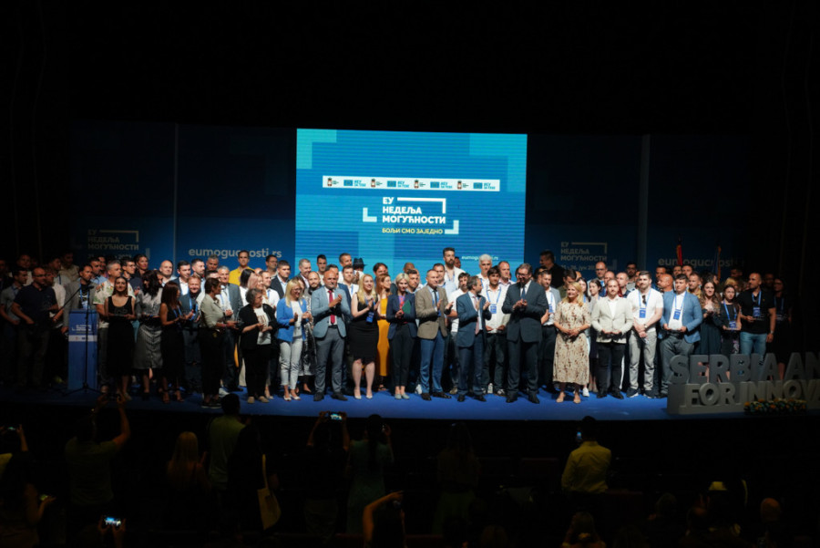 Izložba je podržana sredstvima Evropske unije, kroz programe Fonda za inovacionu delatnost, a Vučić je tom prilikom zahvalio EU na novčanoj pomoći mladim i obrazovanim ljudima, za koje je rekao da dobro vide gde je budućnost Srbije.