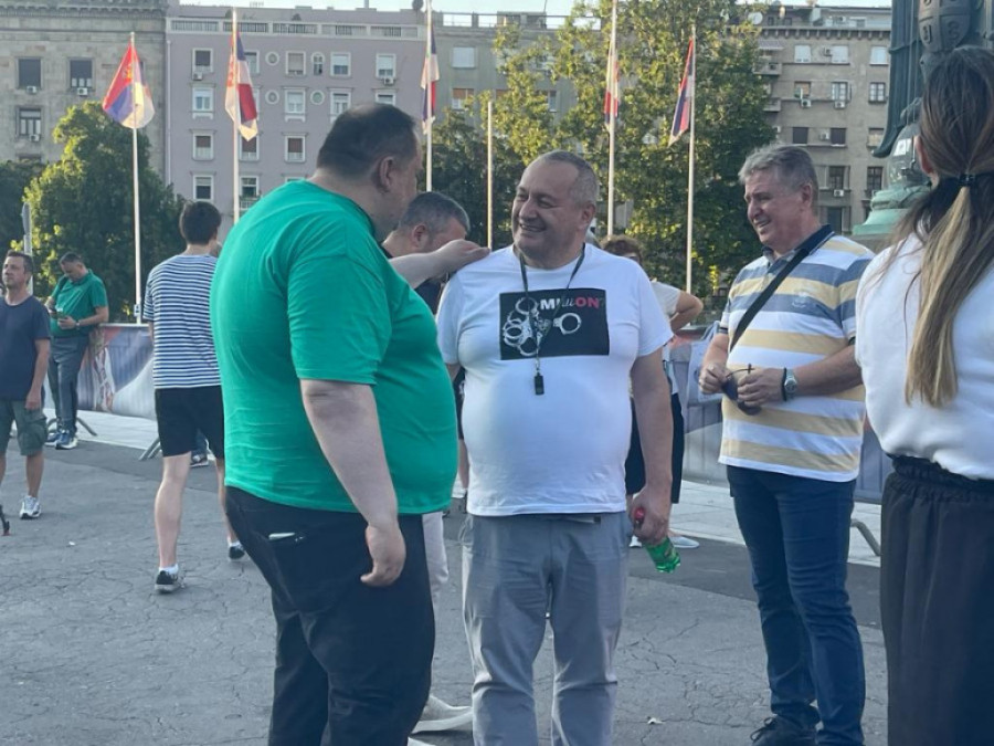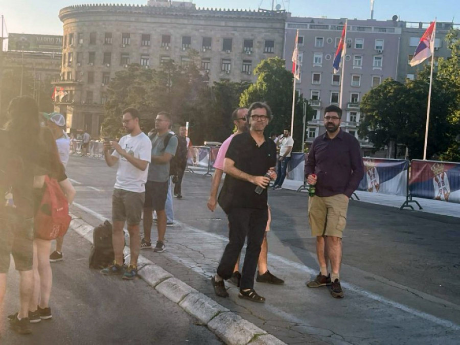 Na politički protest pristižu pripadnici dela opozicije koji stoje iza protesta - Radomir Lazović, Aleksandar Jovanović Ćuta, Marinika Tepić, Biljana Đorđević, Miroslav Aleksić, Boris Tadić i Srđan Milivojević.