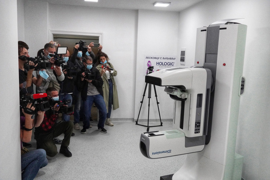 - Hvala vam što brinete o zdravlju Leskovčana, obučeni za rad na mamografu će posebno brinuti o zdravlju naših žena, ovaj mamograf je 65 posto efikasniji, a manje zrači - poručio je predsednik zdravstvenim radnicima Opšte bolnice.