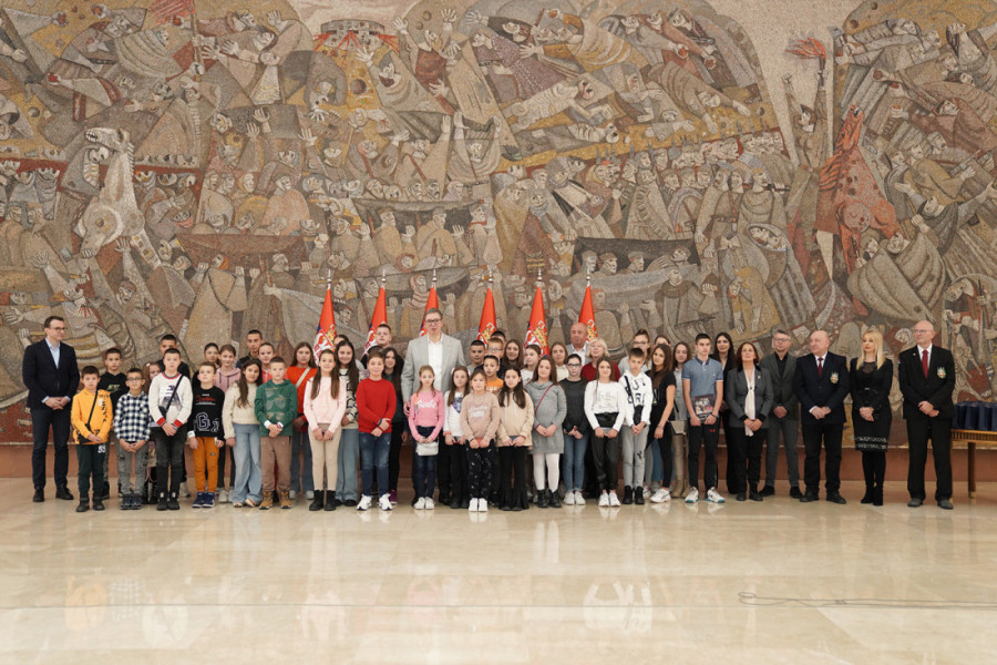 Predsednik Srbije Aleksandar Vučić primio je danas učenike i nastavnike Osnovne škole „Sveti Sava“ iz Žerovnice u Opštini Zvečan sa Kosova i Metohije.