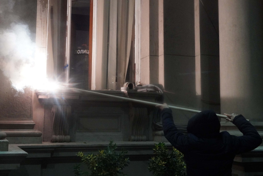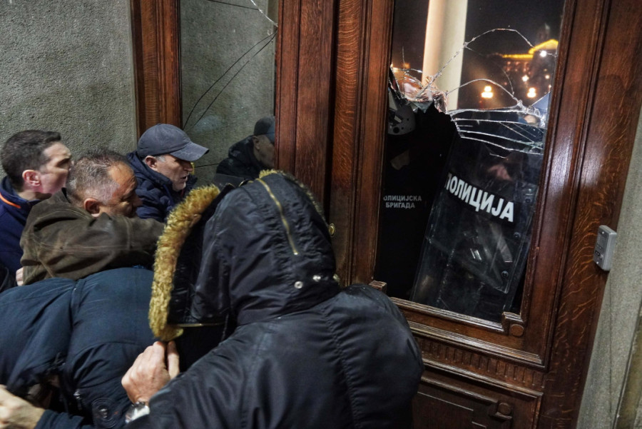 Podsetimo, lideri i pristalice i predstavnici NATO opozije žestokim nasiljem pokušavaju da upadnu u gradsku Skupštinu, lome stakla na vratima, spremaju dinamite.