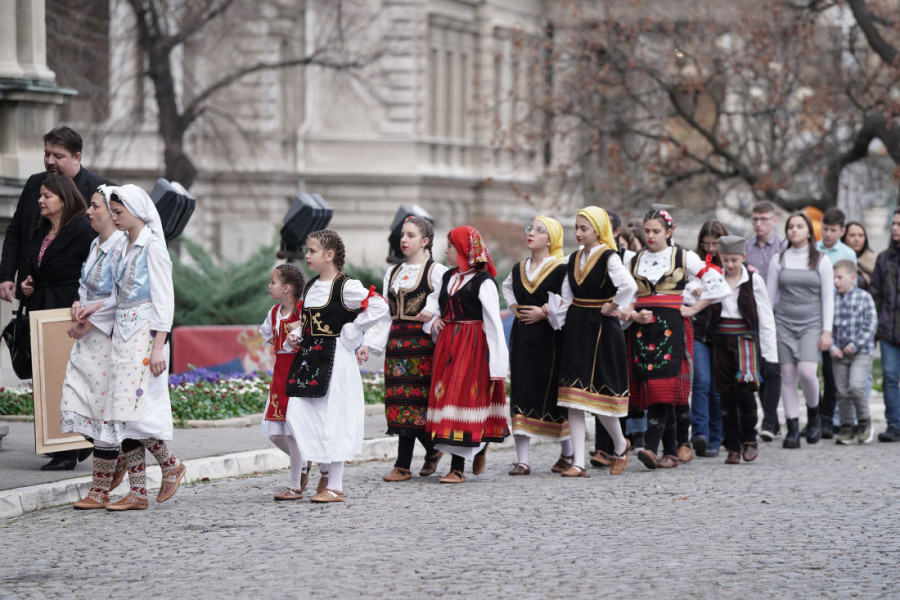 Deca srpske nacionalnosti iz Severne Makedonije, koja borave u poseti Beogradu povodom božićnih praznika, poklonila su predsedniku Srbije Aleksandru Vučiću sliku sa božićnim pozdravom "Hristos se rodi", uz čestitanje Badnjeg dana i Božića predsedniku i celom srpskom rodu.