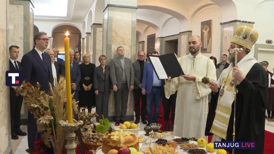 U Predsedništvo je, u prisustvu sveštenstva SPC unet i badnjak.