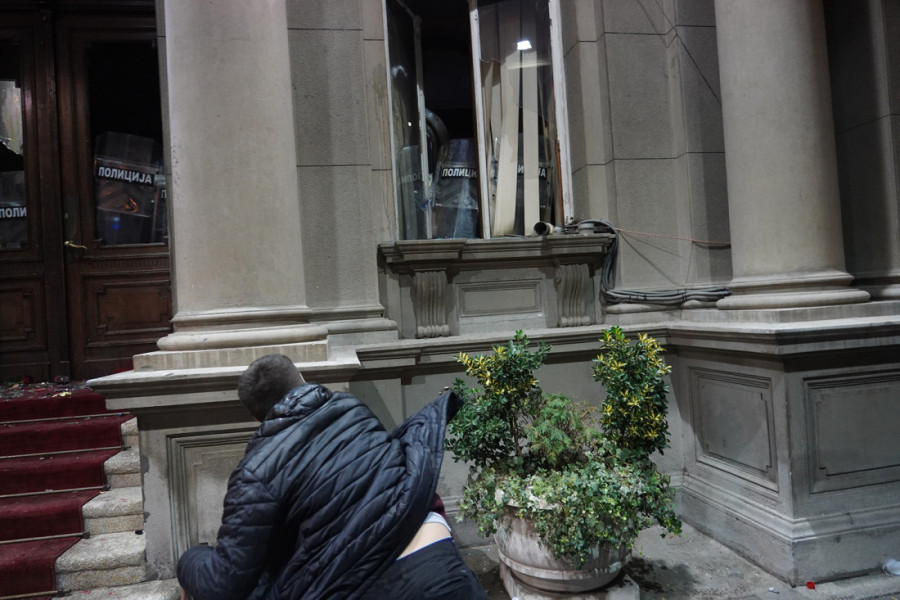 Tada je grupa demonstranata, na čelu sa predstavnicima dela opozicije, pokušala na silu da upadne u Skupštinu grada Beograda.