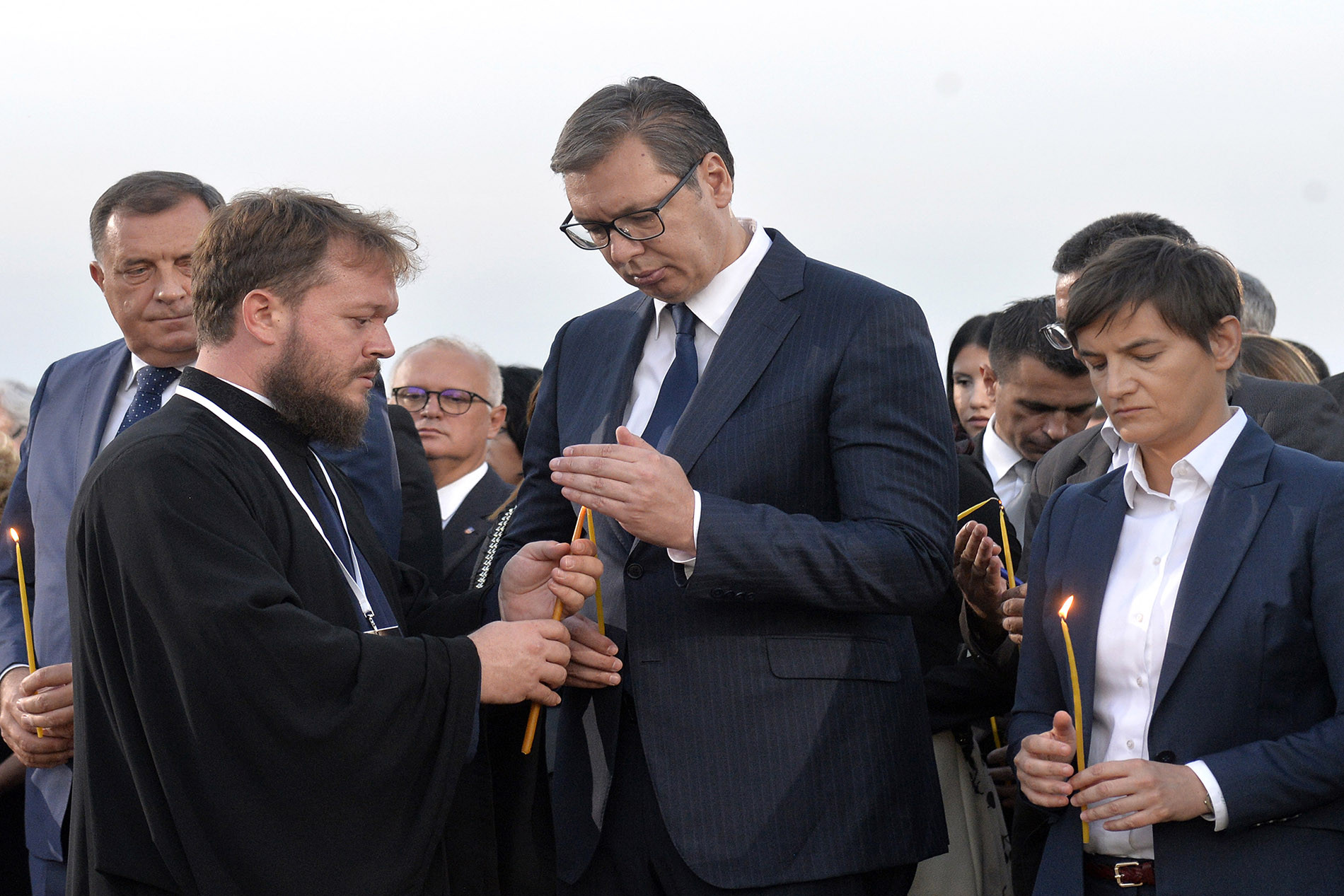 Predsednik Republike Srbije Aleksandar Vučić prisustvuje skupu, kao i ministri Vlade Srbije predvođeni premijerkom Anom Brnabić, patrijarh Porfirije i crkve