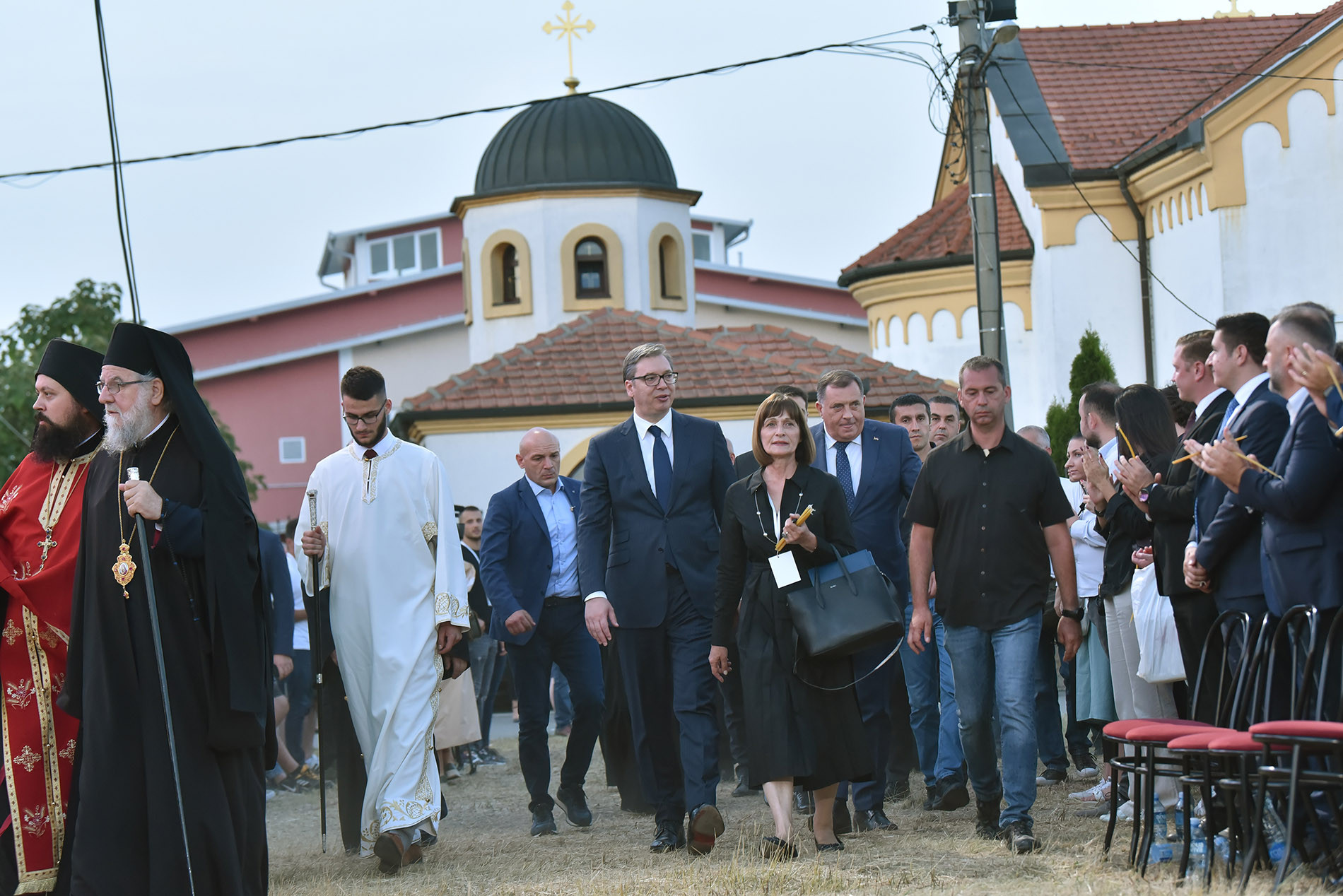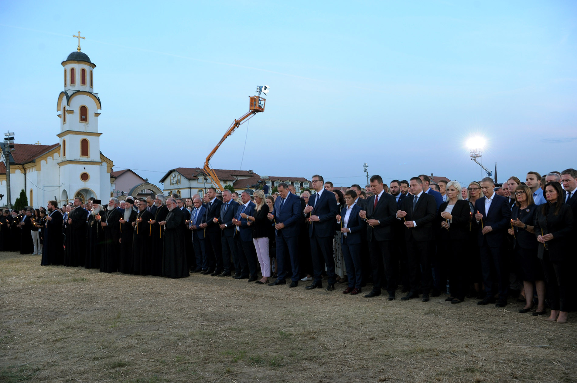 Predsednik Republike Srbije Aleksandar Vučić prisustvuje skupu, kao i ministri Vlade Srbije predvođeni premijerkom Anom Brnabić, patrijarh Porfirije i crkveni velikodostojnici.