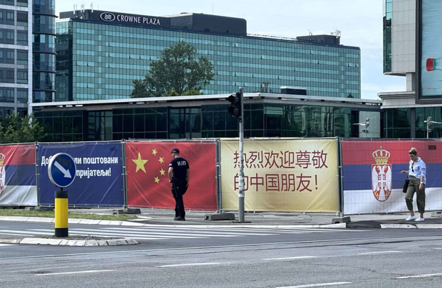 Velika crvena zastava sa pet zlatnih zvezdica pokriva zapadnu kapiju Beograda - Geneks kulu, sa ispisanom porukom dobrodošlice za lidera sa kojom Srbija ima jake ekonomske, ali i političke veze. Vremenom su te veze postale "čelično prijateljstvo" što je nezaobilazna ocena prilikom svake posete ili govora o odnosima Beograda i Pekinga.
