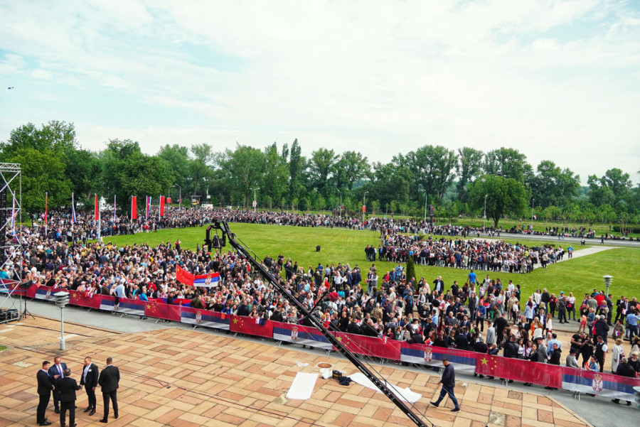 Građani, noseći zastave Srbije i Kine, od jutros se okupljaju oko Palate Srbija.