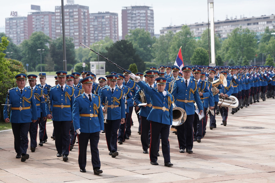 Intonirane su himne dve zemlje, a sve vreme su se u pozadini čuli topovski udari iz 10 počasnih plotuna iz 10 artiljerijskih oruđa.