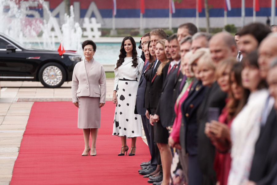Predsednika NR Kine na crvenom tepihu dočekali su predsednik Vučić sa suprugom Tamarom Vučić, kao i premijer Miloš Vučević sa članovima i potpredsednicima vlade i guvernerka Narodne banke Srbije Jorgovanka Tabaković.