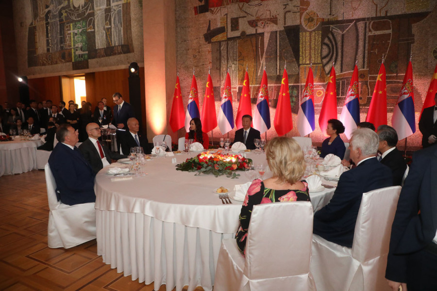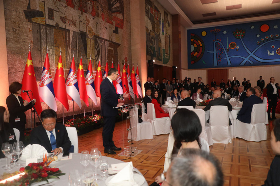 Za nas je danas najveća čast, poštovani predsedniče Si, što ste, sa Vašom suprugom profesorkom Peng, u poseti Republici Srbiji. Daćemo sve od sebe da ostanemo lojalni, odgovorni i iskreni prijatelji NR Kine, kao što smo u potpunosti uvereni da će NR Kina uvek čvrsto stajati uz svog malog prijatelja Republiku Srbiju, poručio je predsednik Srbije Aleksandar Vučić koji je dodao i sledeće: